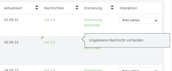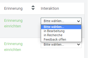 Hier kann je Projekt ein Interaktionsstatus gesetzt werden, um den internen Bearbeitungsstand zu kennzeichen.