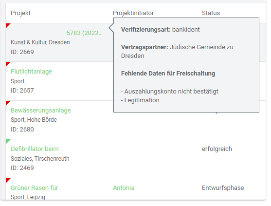 Der Klick auf den verlinkten Projekttitel öffnet dieses in einem neuen Tab.