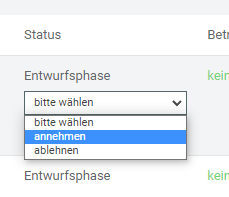 Statuswechsel freigeben: Wurde ein Statuswechsel vom Initiator beantragt, wird dies in der Spalte „Status“ angezeigt: