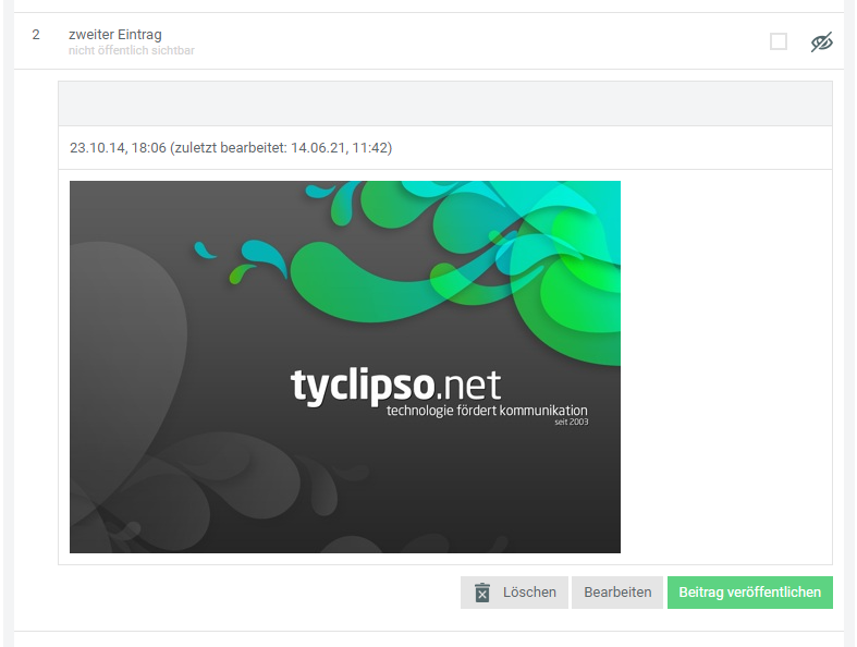 Erst ab Veröffentlichung wird er im Frontend gelistet und kann aufgerufen werden. Einträge können auch jederzeit wieder verborgen werden.