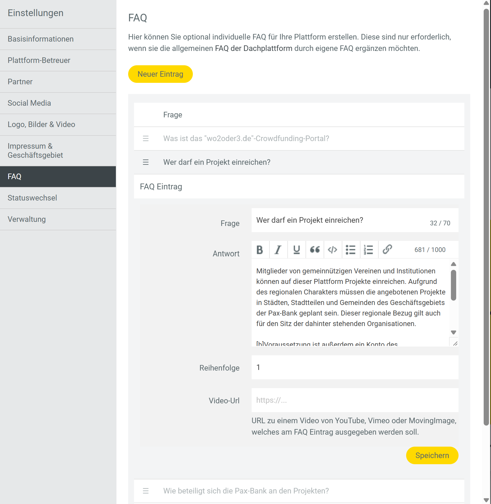 Je nach Plattformkonfiguration können Page-FAQs gepflegt werden.